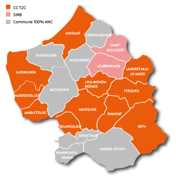 - Gestion en régie de l’assainissement collectif par La terre des 2 caps pour les communes de Ambleteuse, Audresselles, Audinghen, Beuvrequen, Ferques, Landrethun-le-Nord, Leulinghen-Bernes, Marquise, Réty, Rinxent et Wissant.