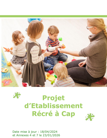 Situé à Ferques, sur le hameau d'Elinghen, l'EAJE Récré à Cap accueille jusqu'à 20 enfants âgés de 10 semaines à 4 ans dans des locaux aménagés pour leur confort comprenant ainsi différents espaces (l’espace des "mini pouce" dédié aux bébés, celui des "p’tits pas" et des "explorateurs" pour les enfants marcheurs, préscolaires et scolaires). Une salle de motricité, un jardin et un atelier sont également disponibles pour réaliser toutes les actions pédagogiques. La crèche comprend aussi deux dortoirs, deux salles de changes et une salle de restauration.
