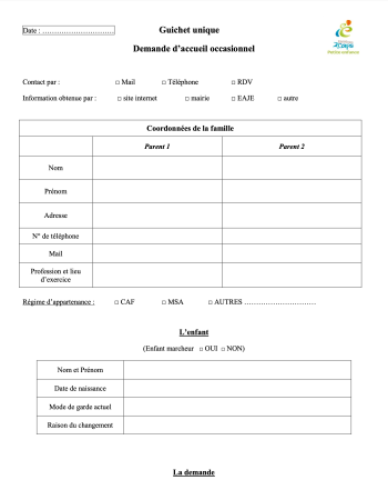 L’accueil occasionnel : convient lorsque le besoin est ponctuel